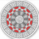 Um simples padrão geométrico por fora, inspirado em parte por designs astecas antigas, rodeia uma camada temática de alienígena, uma camada de gradiente e uma simples camada de preto neste design de círculo concêntrico.