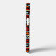 Um design do estilo Aztec em um padrão digital e vetorial com vermelho, azul, laranja, amarelo e preto.