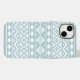 Um design do estilo Aztec em um padrão digital e vetorial com detalhes brancos sobre um fundo azul de ovo de pato.