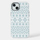 Um design do estilo Aztec em um padrão digital e vetorial com detalhes azuis de ovo de pato em um fundo branco.