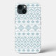 Um design do estilo Aztec em um padrão digital e vetorial com detalhes azuis de ovo de pato em um fundo branco.
