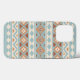 Um design no estilo Aztec em um padrão digital e vetorial em cores azuis, creme e terracota.