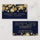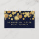 Características deste design na moda à moda modernas um teste padrão de ponto do bokeh do ouro com um fundo dos azuis marinhos. Personalize este cartão de visita com sua própria informação na parte dianteira e na parte traseira. Estes cartões trabalham bem para planejadores de evento assim como artistas criativos tais como designer gráficos. Estes são igualmente excelente para meios digitais e design web.