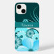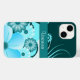 © Sunny Mars Designs. Hibiscus: Cobrir de Telefone Aqua Blue Case-Mate - Na moda, moda, azul-chic floral, cobrir telefônicos personalizados totalmente personalizáveis com um bonito, giro, elegante design de flor floral de hibisco abstrato azul, lindo e bonito, contra um fundo negro.