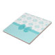 Uma cor damasco azul aqua e bolinhas cinzentas femininas, ao estilo da safra feminina, embelezadas com uma fita turquesa atada a um arco. Imagem impressa plana, não fita real.