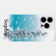 Belo abstrato de pinheiro de design, azul e prata, com flocos de neve e luzes cintilantes.