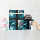 Papel de embrulho na moda com uma coleção de bolhas de Natal azuis e prateadas. Um design personalizável para você personalizar com seu próprio texto, imagens e ideias. Imagem criada usando uma fotografia original e técnicas digitais.