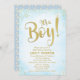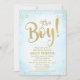 Excelente para um chá de fraldas de rapazes. É um menino com ouro e estrelas amarelas ao redor. Personalize com os detalhes de sua parte um convite gentil.