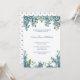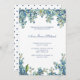 Convite feminino e elegante da festa de formatura com o botânico azul decorativo na parte dianteira, e pontos azuis bonito na parte traseira.