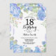 Azul Botânico Floral 18º Convite de Aniversário. Convite à Mulher para o Aniversário de Peões Rosa Floral Flor Floral de Aquarela. Rosa Rosa Rosa Elegante e Flores de Pêonias. Aniversário Adulto. Fundo Branco. Preto e Branco. 13 15 16º 18º 20 21rua 30 40º 50º 60º 80 de 70 100º, qualquer idade. Para mais personalização, clique no botão "Personalizar" e use nossa ferramenta de design para modificar este modelo.