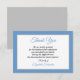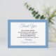 Este simples agradecimento pelo cartão de condolências apresenta uma borda azul-cinza e prata para o seu agradecimento pela mensagem de condolências. As palavras "Obrigado" aparecem em uma elegante escrita azul-cinza que também é usada para o nome do seu ente querido. O seu agradecimento aparece em preto para fazer um contraste encantador. O verso deste cartão plano é prata para complementar a borda prateada na frente do cartão. Copyright sympathythankyou
