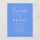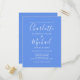 Com nomes de estilo de assinatura, este cartão postal de convite de casamento azul centáurea elegante pode ser personalizado com suas informações em letras chiques. Concebido por Thisisnotme©