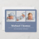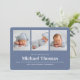 Bem-vindos ao seu estilo com este cartão de anúncio do bebê com um design de colagem multifoto limpo e moderno. Com um esquema simples, mas ousado, de cor azul-marinho e branca, esse cartão exibe tipografia minimalista e linhas contemporâneas, perfeitas para compartilhar detalhes de recém-nascidos de forma fresca e polida. Ideal para exibir estatísticas de bebês e fotos favoritas, este cartão traz um eterno, charme subestimado para anúncios de nascimento. Celebre sua nova chegada com esta design sem esforço inspirada em chic e fotos de bebês.