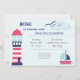 Convite de aniversário para crianças com tema náutico e combinação de cor vermelha azul.