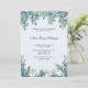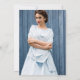 Convite para fotos de festa de formatura elegante com a frente botânica azul decorativa e foto de formando no verso.