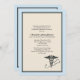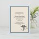 Compartilhe o seu orgulho em alcançar o seu diploma de medicina com este convite/anúncio atraente. A borda azul sutil enquadra o centro de cor preta e apresenta um símbolo de Caduco e um estetoscópio.O cartão é fácil de personalizar com seu texto, fonte, cor da fonte e escolha de seis tipos de papel.