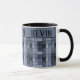 Azul, denim, tartã, xadrez. Caneca de café de duas