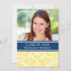 Cartão feito sob encomenda do modelo da foto do convite da festa de formatura em azuis marinhos escuros elegantes e sofisticados, na cor damasco floral do vintage clássico amarelo e branco do limão brilhante -. Personalize este cartão do anúncio do formando adicionando o ano de sua graduação, de sua foto, e de seus detalhes da festa de formatura.