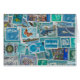 Para amantes e coletores do selo, este design vangloria-se de selos azuis de todo o mundo.