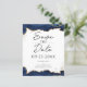 Convites de Casamento Variegados à Pedra de Agitação Azul-abstrato e Dourada. Estrias de pedra de ouro falsas. A fonte do script é realçada com a fonte de nome de serif de leitura fácil. Fácil de ajustar para as suas necessidades de casamento. Feito para combinar o Dourado faux Glitter Stone Variegated Wedding Suite.