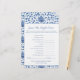 Jogo de chá de fraldas "Adivinha o preço certo?" em um elegante padrão azul e branco de aquarela, inspirado pelo tipo que você pode ver em potes gengibres antigos. Todo o texto é totalmente personalizável para suas necessidades.