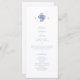 Chic com elegância jovem. Este doce cartão azul e branco do programa de casamento exumenta um tom fresco, moderno e jovem. A frente do cartão inclui um conjunto contemporâneo de fontes em um monograma azul empoeirado e elegante de casal floral, contra um fundo branco nítido. Estão incluídos os obrigados que você envia, a ordem da cerimônia e a sua própria lista de festas de casamento no verso.