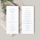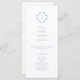 Chic com elegância jovem. Este doce cartão azul e branco do programa de casamento exumenta um tom fresco, moderno e jovem. A frente do cartão inclui um conjunto contemporâneo de fontes em um monograma azul empoeirado e elegante de casal floral, contra um fundo branco nítido. Estão incluídos os obrigados que você envia, a ordem da cerimônia e a sua própria lista de festas de casamento no verso.