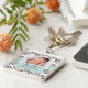 Personalize este anel azul e marrom bonito do chaveiro da foto do bebê do damasco com uma imagem de seu bebé, e personalize-o com seus nome e data de nascimento. Isto faz um presente bonito para uma mamã ou uma avó nova. Design por Chrissy H. Estúdio, LLC.