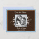 Adicione sua própria foto ao nosso personalizado Guarde os cartões postais Data com um elegante fundo marrom e azul. Modelo fácil de usar - basta adicionar sua foto e digitar os nomes do noivo e do noivo, juntamente com a data do casamento no espaço fornecido.