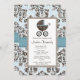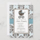Azul e convites do chá de fraldas do damasco de