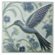 Alivio azul de índio e verde-hortelã azulejo cerâmico Hummingbird inspirado pelo Art Nouveau e pelos movimentos Artes e Artesanatos com fundo floral. Perfeito para um presente de inauguração de casa usar como trivit ou para adicionar um azulejo decorativo na sua própria lição. O azulejo de cerâmica é liso, com um efeito falso 3D. Este é o azulejo virado para a esquerda. Emparelhe-o com o azulejo virado para a direita para uma decoração de tiling simétrica.