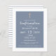 Papel acessível personalizável, convite de comunhão, apresentando um fundo azul empoeirado moderno e branco limpo com uma cruz de efeito dourado ornamentado, com um reverso de listra.