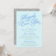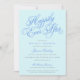 Convites de chá de panela de conto "Feliz para Sempre" em azul e cinza, com belos florescimentos tipográficos. O texto do roteiro diz "Felizmente Depois" em azul, com um design de estrela no backer.