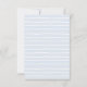 Este belo cartão de cerimônia de casamento, parte da Coleção de Blooms de Hydrangea Azul, apresenta uma borda de hydrangea azul e seu texto personalizado. O reverso é uma faixa de aquarela fina, que pode ser apagada para uma parte traseira de cor sólida. Use a modelo para preencher suas informações. O recurso "Personalizar mais" pode ser usado para alterar a fonte (tamanho, estilo, cor) e adicionar mais linhas de texto, alterar o layout e adicionar texto ao verso.