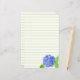 Papel de papelaria verde revestido de uma flor de hydrangea, em forma de uma variedade de tons azuis, na pétala das flores, e uma folha verde de abacate solteiro pintada com aquarela. Você pode remover as linhas se as preferencialmentes tiverem um papel de carta sólido e você pode mudar a cor do papel de carta.