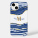 Indigo azul aquarela agate marble design com detalhes falsos de brilho dourado. Altere o nome e monograma Inicial para personalizar.