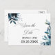 Este marinho celeste azul floral salva o cartão de data é perfeito para um casamento de destino. O design apresenta marinhos, azuis e índios lindamente desenhados à mão, bem dispostos em um buquê encantador.