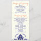Elegante damask Motif Blue, cerimônia de casamento dos corais e programa de festas. Um design de casamento moderno, mas clássico, com um talento retrô. Um delicado design de casamento com vintage sente-o, perfeito para um casamento de primavera ou verão contemporâneo ou tradicional.