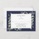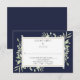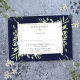 Com delicada aguarela de folhagem de jardim campestre em fundo azul marinho, este cartão de RSVP botânico elegante pode ser personalizado com as suas informações especiais. Concebido por Thisisnotme©