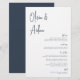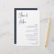 Projetado para combinar com nossos convites de casamento de Script Manuscrito Moderno. Uma bela design baseada na tipografia, com um toque minimalista, com um roteiro manuscrito azul-marinho moderno e uma letra serif clássica. Personalize com seus itens de menu com oito campos de texto personalizados.