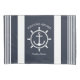 Um padrão marinho azul e listrado branco exude elegância e sofisticação. A âncora no centro representa esperança, estabilidade e segurança, evocando um senso de resiliência e força. A design limpa e moderna é visualmente cativante, inspirando um sentimento de aventura náutica e relaxamento sereno.