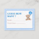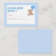 "Adicione diversão ao seu chá de fraldas com este cartão azul "Nós podemos esperar", adivinha quantos cartões de jogo. Apresentando um doce ursinho e design de gingham azul-macio, este jogo divertido convida seus convidados a adivinhar o número de itens em um boião. Uma forma encantadora e interativa de celebrar a chegada da sua pequena!"