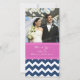 Obrigado de casamento você cartão com fotos em elegante e moderno fuchsia cor-de-rosa brilhante, azul marinho escuro e padrão branco chevron zigzags. Uma maneira perfeita para obrigados amigos e família para presentes de casamento e para compartilhar suas fotos de casamento. Disponível em postagem correspondente e muitos outros produtos para o seu casamento.