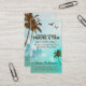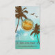 O viagem tropical da praia & o cartão de visita de Tan são o cartão profissional do destino perfeito para seus clientes! Este cartão de visita caracteriza uma paisagem cénico da praia com surfista galão e as palmeiras tropicais. As palmeiras podem ser encontradas nas bordas e nas gaivotas que voam os céus acima. Este é um grande cartão de visita para o negócio do viagem ou o negócio do tan/massagem.