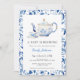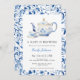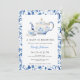Comemore no estilo do eterno com este convite a uma mochila azul "A Baby is Brewing". Apresentando um bule e xícara clássicos com intrincadas bordas florais de aquarela azul, este design conta a história da elegância e tradição, fazer perfeito para um chá de fraldas sofisticado.