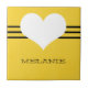 Doce e encantador Azulejo Moderno com fundo amarelo e coração giro e borda riscada. Este azulejo giro e giro vai adicionar estilo a qualquer decoração. Personalize com o texto de sua escolha. Clique em "Personalizar" para encontrar opções adicionais de personalização.