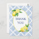 Azulejo Azul Lemon Italiano Obrigado Cartão Postal