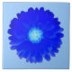 Este incrível azulejo apresenta uma fotografia de uma flor de marigold que foi manipulada para criar uma bela flor azul escura com um centro azul brilhante. A flor está sobre um fundo azul pálido.
