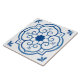Este produto tem um design intricado com fundo azul escuro e padrões ornamentais brancos. O design lembra os estilos tradicionais de cerâmica ou porcelana, que podem interessar a quem aprecia a estética clássica ou vintage.