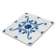 Este produto tem um design intricado com fundo azul escuro e padrões ornamentais brancos. O design lembra os estilos tradicionais de cerâmica ou porcelana, que podem interessar a quem aprecia a estética clássica ou vintage.